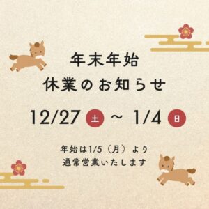 ※2026年1月5日(月)からは通常通りの営業となります。