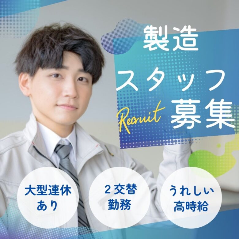 勤務時間 | 【2交替制】 8:00~17:00 20:00~5:00 派遣:実働8時間 休憩:60分 残業:20時間/月 程度あり(生産状況による) |