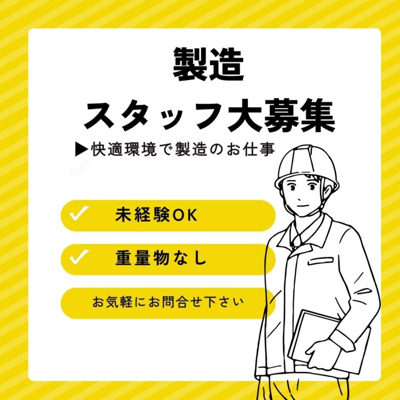 派遣:実働8時間(休憩60分)【オススメポイント】◆◆◆◆◆◆◆ ◇ 社会保険完備 ◇ ◇ 土日祝お休みでプライベート充実 ◇ ◇ 家電付きの男子寮あり(25,000円/1ヵ月) ◇ ◇ 未経験者OK ◇ ◇ 車・バイク通勤可(通勤費支給)◇ 家電付 […] -